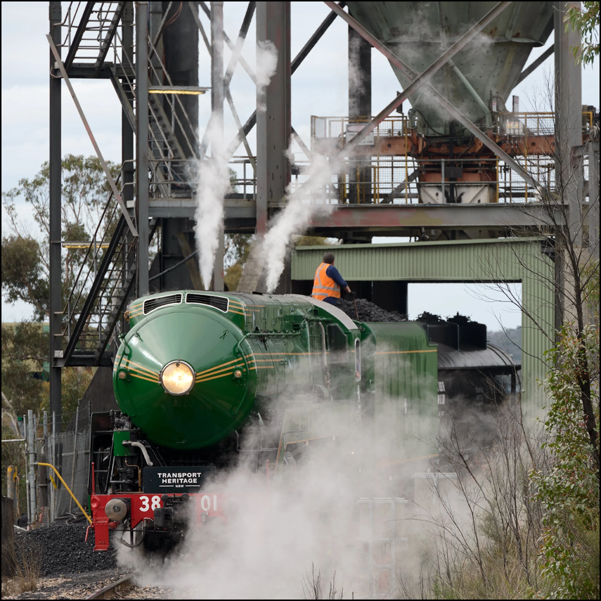 3801 taking on coal and water - Newnes Junction Loop - May 2021